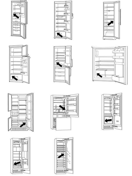 - Hűtőtér bal oldali belső fala – Nyissa ki a hűtőt, és nézzen a belső oldalfalra.