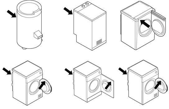 A szárítógépek adattáblája leggyakrabban az ajtókeret belsejében vagy az ajtónyílás belső peremén található.