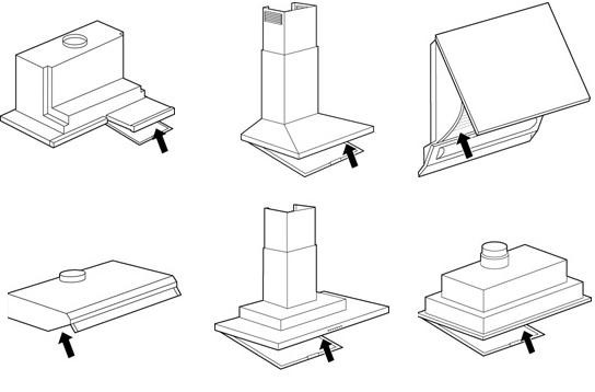 - A készülék hátulján: Bizonyos modelleknél az adattábla a páraelszívó hátulján is elhelyezkedhet. Ehhez előfordulhat, hogy le kell szerelni a készüléket a falról vagy a beépítési helyéről.