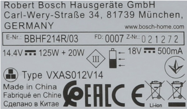 | Bosch porszívó | BBHF214R/03 |