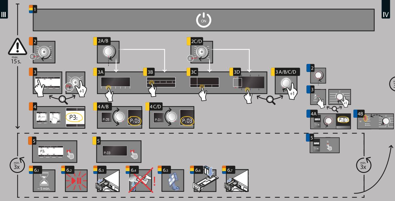 A szín szerinti ábrák alapján menjen végig a használati útmutatón:
