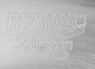 Solingen: Németországban található város neve, amely híres a kiváló minőségű acéltermékeiről, különösen a konyhai eszközök és kések terén. A „Solingen” felirat arra utal, hogy a termék megfelel bizonyos minőségi előírásoknak, amelyeket a városban gyártott acélárukra vonatkoztatnak.