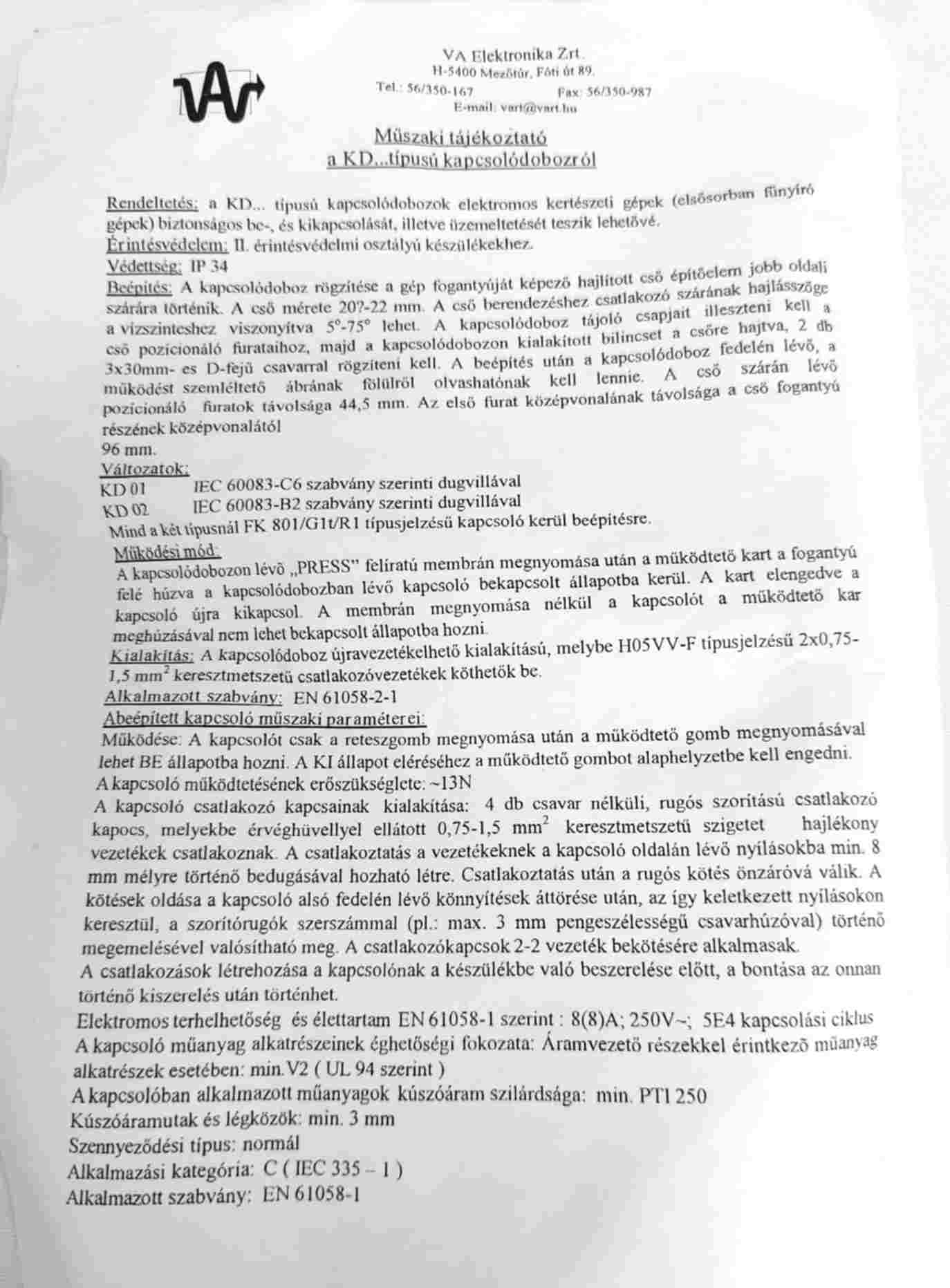 Univerzális fűnyíró kapcsoló